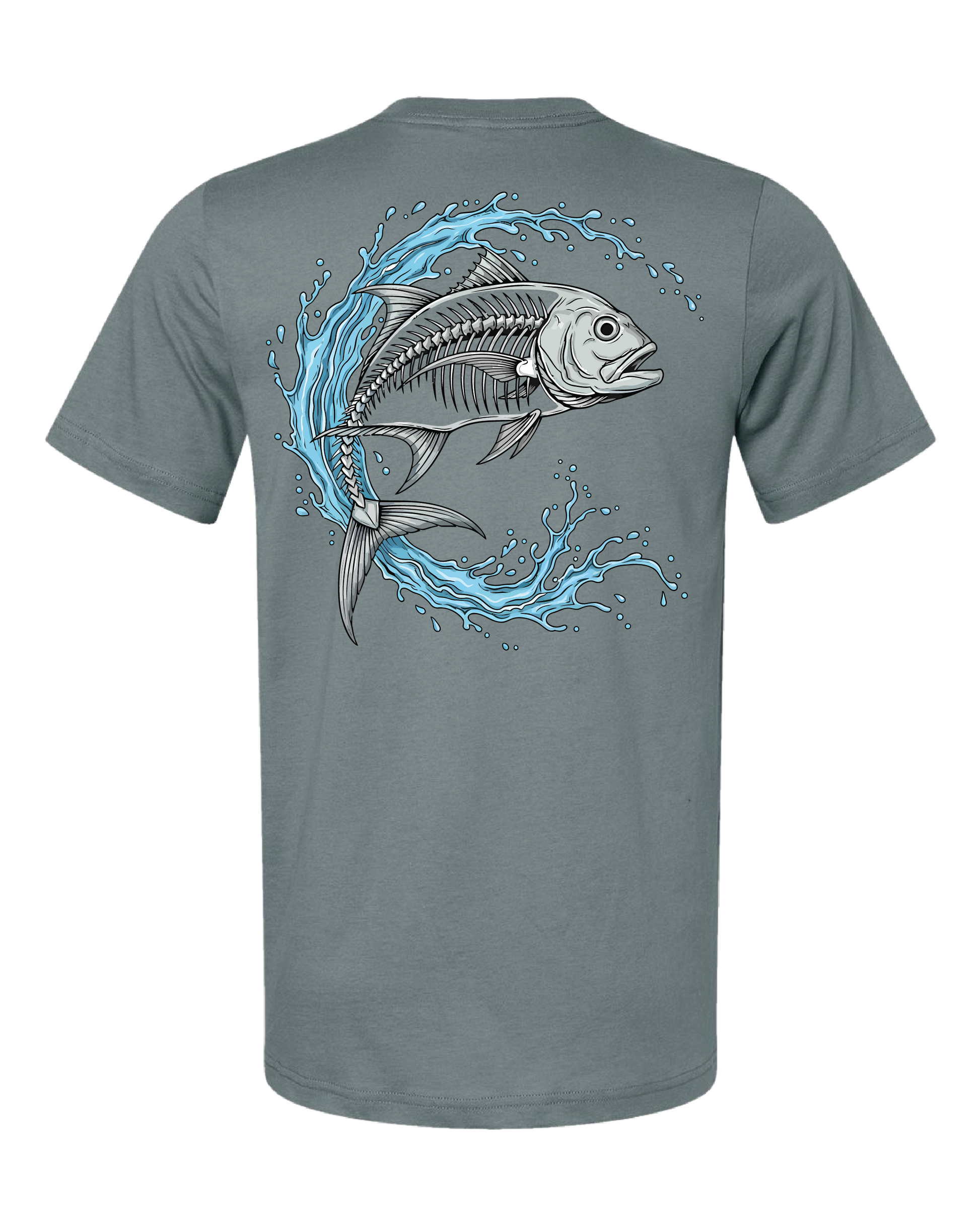 The Bone Strike Tee features a hard-charging gamefish skeleton bursting through a crashing wave — a reminder that the fight, the chase, and the addiction to saltwater runs deep. Even down to the bone.